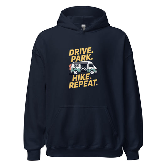 Drive. Park. Hike. Repeat.' Unisex-Kapuzenpullover